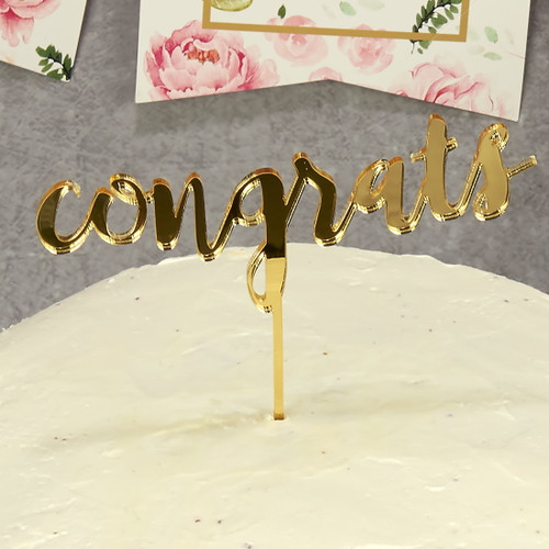 Way To Celebrate Gold 6.25" X 2" Script Congrats Cake Pick Topper, 1 Package